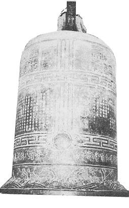 vessel set into vibration by a blow from a clapper within or a hammer without. Apparently