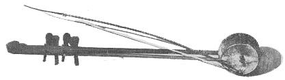 fingerboard and ivory capotasto. The neck and cylindrical sound-box are typically