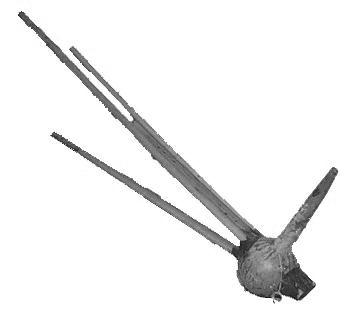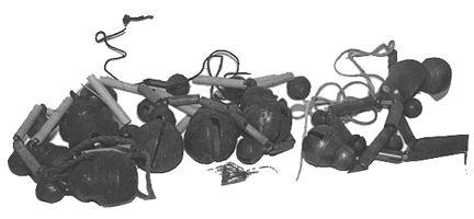 disks that are fitted onto a 2" W X 12" L wood piece. It is shaken with one hand